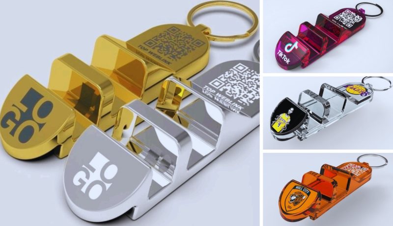 Smart Holder® can be used for retail sales or as a promotional product purchased in bulk through SmartFinds Marketing. Smart Holder® comes in any desired color, 4-color branding on the product if desired, QR code or barcode imprint, and 4-color printed packaging. The product options are customized to include 1, 2, 5, or 10-unit packages or free-standing. Point-of-Purchase (POP) cardboard stands with 49 pre-packaged units are available for retail stores. Additional manufacturing possibilities include custom-colored keychain rings.